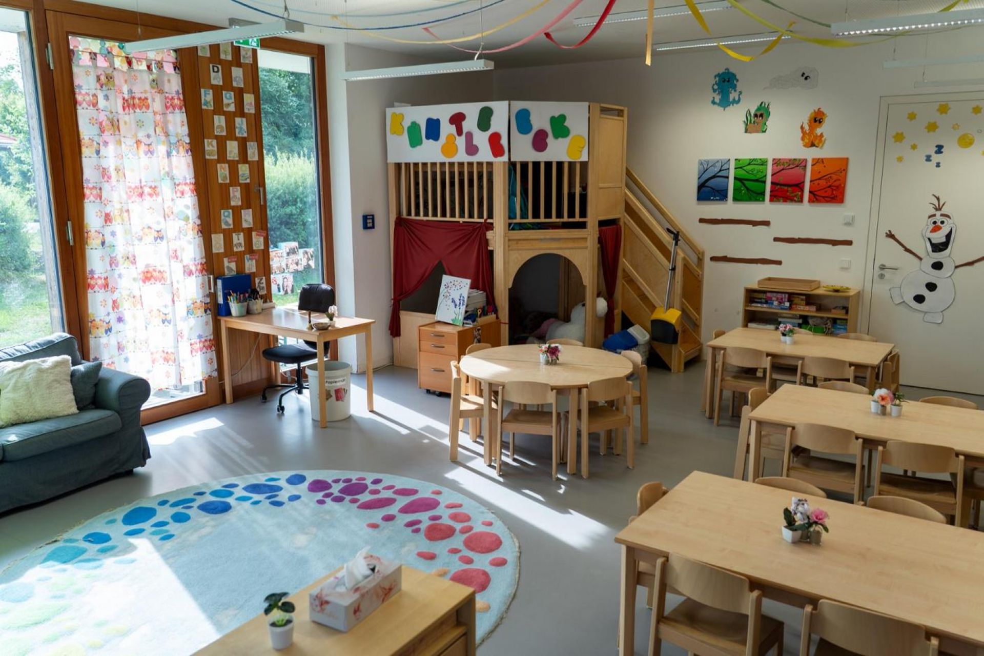 Die hellen und freundlichen Räume schaffen eine angenehme Atmosphäre, in der sich Kinder schnell wohlfühlen und frei entfalten können. Auch die großzügigen Spiel- und Funktionsbereiche bieten viele Möglichkeiten für Bewegung, Kreativität und gemeinsames Entdecken.